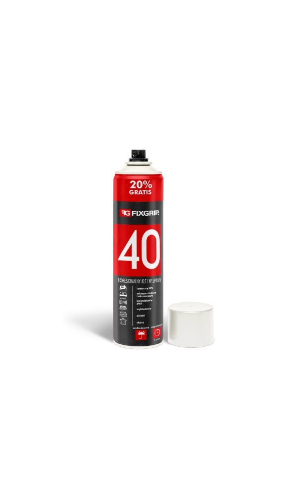 FIXGRIP 40 to wysokowydajny, wielofunkcyjny klej w sprayu wyjątkowej jakości. Ten specjalnie opracowany produkt jest palnym, wrażliwym na nacisk klejem PCV na bazie rozpuszczalników. 600ml