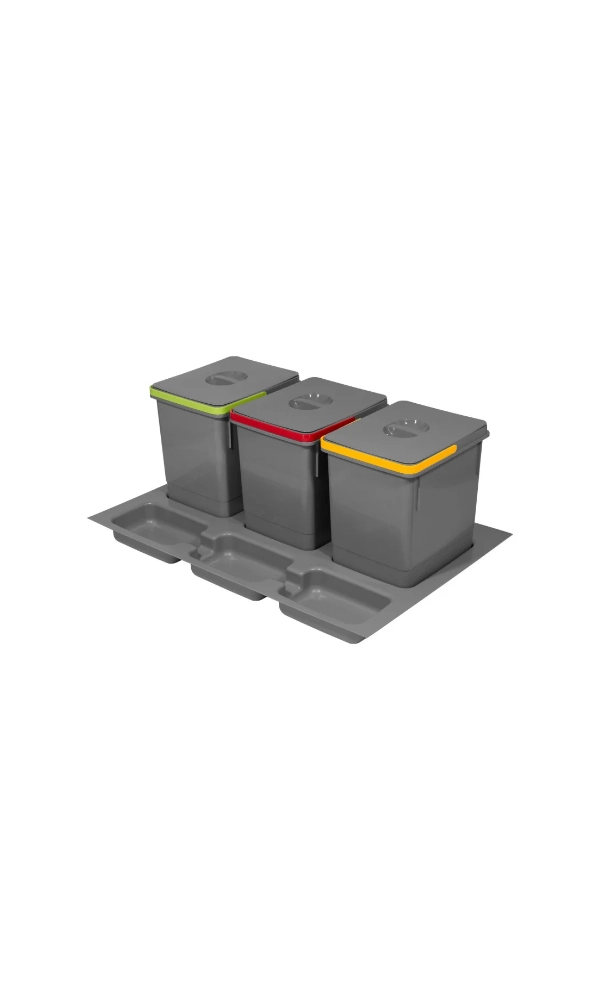 RUBIO 80/3×15L to praktyczny i estetyczny system do segregacji odpadów, przeznaczony do montażu w dolnych szafkach kuchennych o szerokości 80 cm. Wyposażony w trzy pojemniki o pojemności 15 litrów, umożliwia wygodne rozdzielenie odpadów bez utraty przestrzeni roboczej.