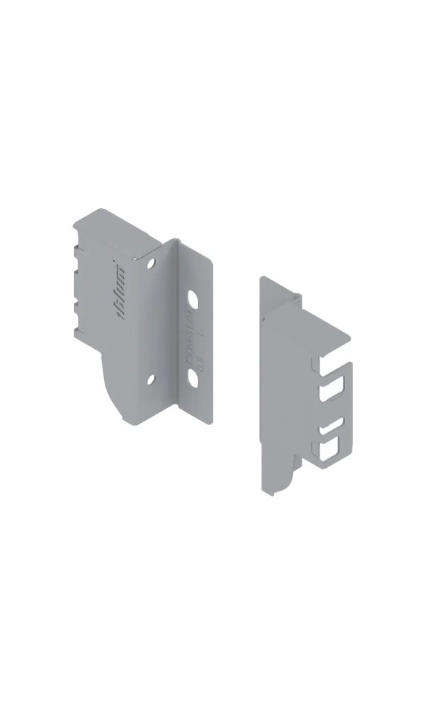 Mocowanie ściany tylnej BLUM TANDEMBOX ANTARO M 84 Z30M000S to niezawodny zestaw montażowy przeznaczony do systemu szuflad ANTARO. Dzięki solidnej konstrukcji i precyzyjnemu dopasowaniu zapewnia trwałe i estetyczne połączenie tylnej ścianki z bokami szuflady. Produkt w kolorze szarym, doskonale komponuje się z wnętrzem nowoczesnych mebli.