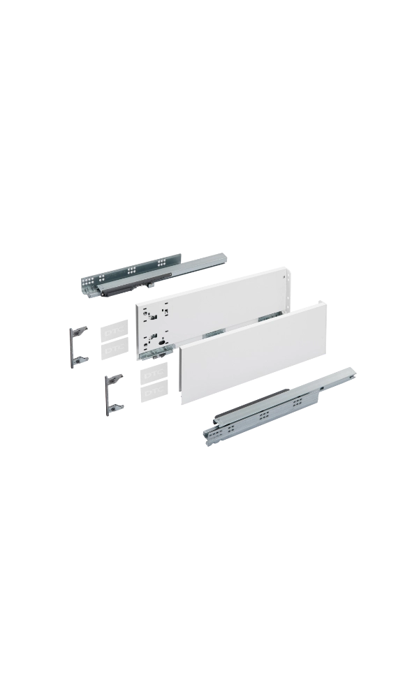 Szuflady z serii Slim Box to nowoczesne systemy o cienkich ściankach bocznych, które zapewniają elegancki wygląd mebli i maksymalne wykorzystanie przestrzeni wewnętrznej. Płynne i ciche domykanie nawet przy dużym obciążeniu.