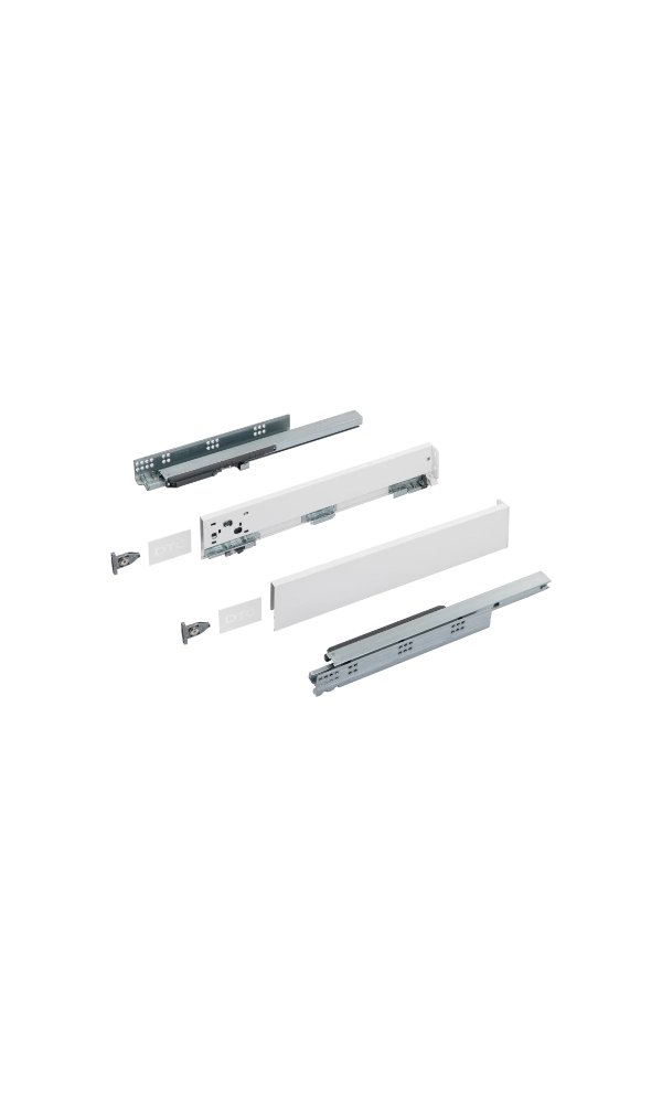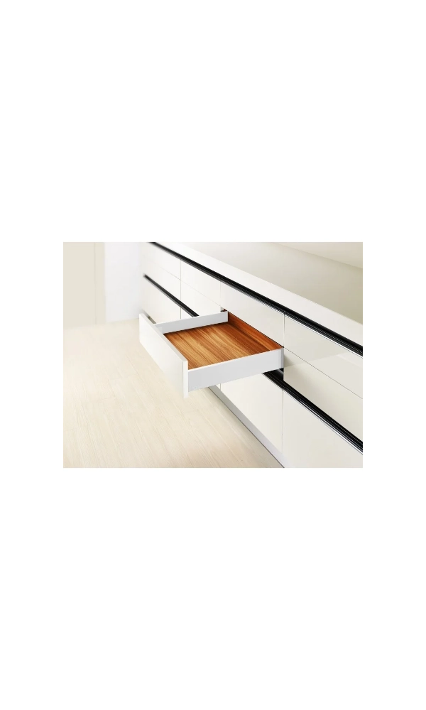 Szuflady z serii Slim Box to nowoczesne systemy o cienkich ściankach bocznych, które zapewniają elegancki wygląd mebli i maksymalne wykorzystanie przestrzeni wewnętrznej. Płynne i ciche domykanie nawet przy dużym obciążeniu.