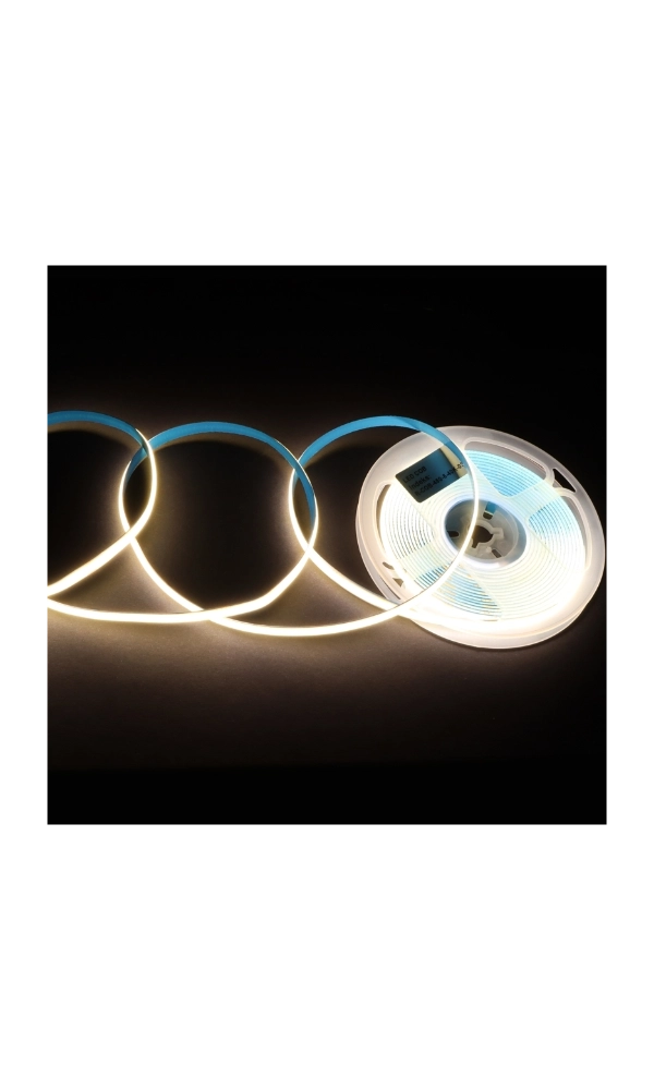 Taśma LED COB (Chip on Board) to zaawansowane technologicznie rozwiązanie, które zapewnia jednolite, intensywne światło bez widocznych diod. Idealna do oświetlenia dekoracyjnego, jak i funkcjonalnego, w każdym wnętrzu wymagającym nowoczesnej estetyki oraz doskonałej jakości światła. Taśma COB charakteryzuje się zwiększoną żywotnością oraz mniejszym poborem mocy niż jej odpowiednik w technologii SMD. Znajdzie ona zastosowanie jako oświetlenie zarówno użytkowe jak i dekoracyjne.