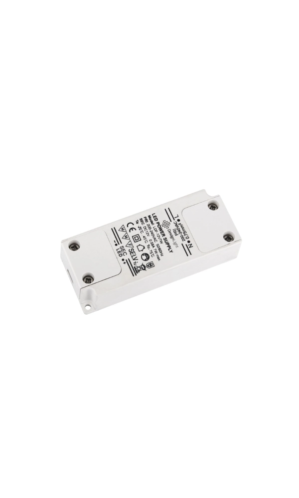 Zasilacz LED Standard Plus 7 W (12 V DC), kompaktowy w białej obudowie, zapewniający bezpieczne, stabilne zasilanie do taśm i opraw LED do 7 W (IP20)
